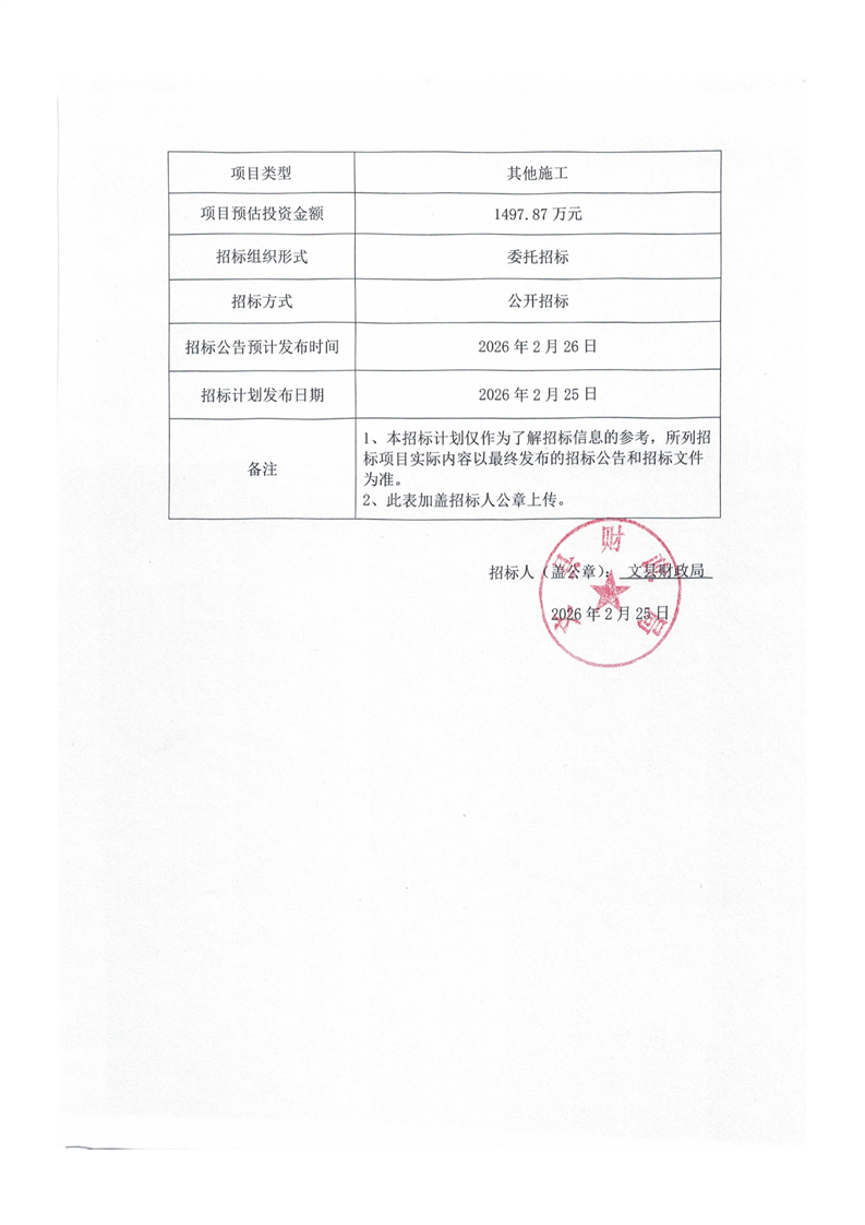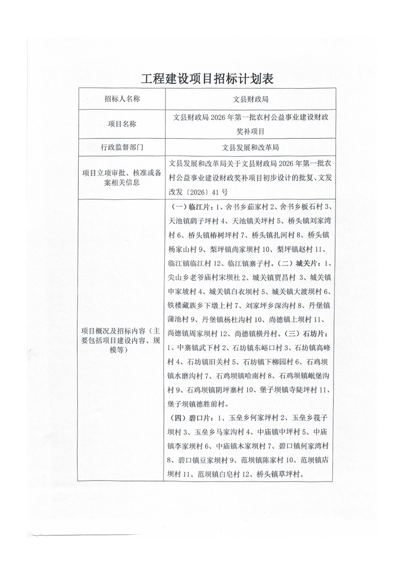 文縣財政局2026年第一批農村公益事業(yè)建設財政獎補項目