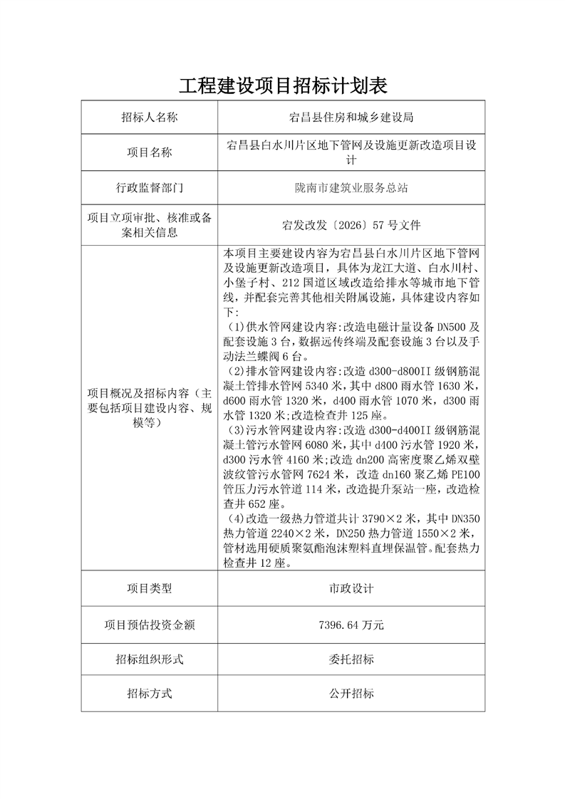 宕昌縣白水川片區(qū)地下管網(wǎng)及設(shè)施更新改造項目設(shè)計