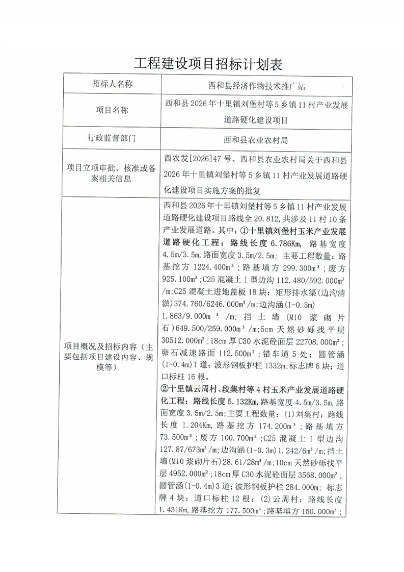 西和縣2026年十里鎮(zhèn)劉堡村等5鄉(xiāng)鎮(zhèn)11村產(chǎn)業(yè)發(fā)展道路硬化建設(shè)項(xiàng)目