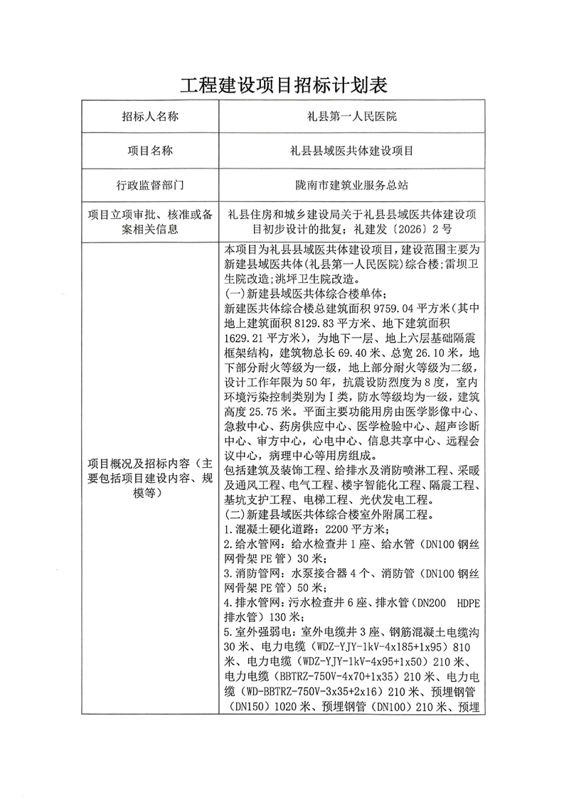 禮縣縣域醫(yī)共體建設項目